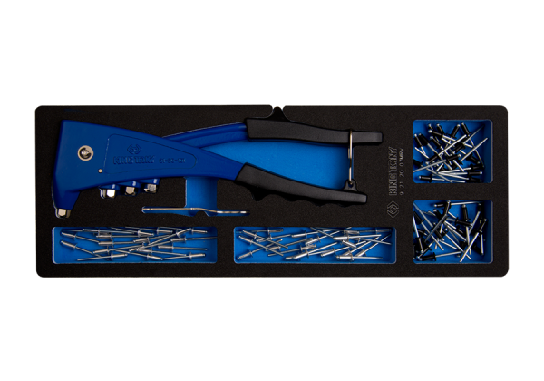 NITOWNICA RĘCZNA DO NITÓW STALOWYCH 2.4 - 4.8mm Z ZESTWEM NITÓW, WKŁAD Z PIANKI EVA DO WÓZKA