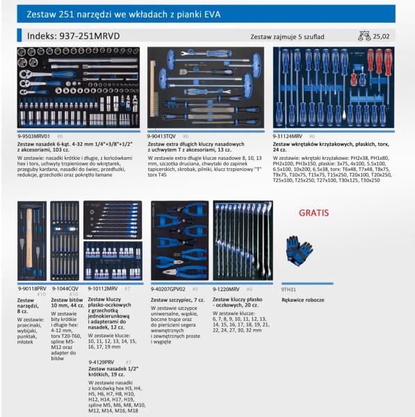 PROMOCJA-ZESTAW 251cz. NARZĘDZI DO WÓZKA PROMOCYJNEGO (WKŁADY Z PIANKI)