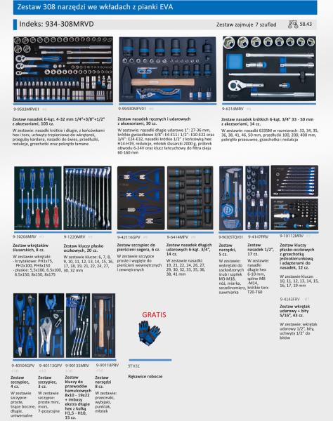 PROMOCJA-ZESTAW 308cz. NARZĘDZI DO WÓZKA PROMOCYJNEGO (WKŁADY Z PIANKI)