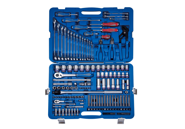 PROMOCJA-ZESTAW NARZĘDZI 153 cz. NASADKI 1/4"+1/2" 4 -32mm 6-kąt. WKRĘTAKI. SZCZYPCE. KLUCZE. BITY. WALIZKA