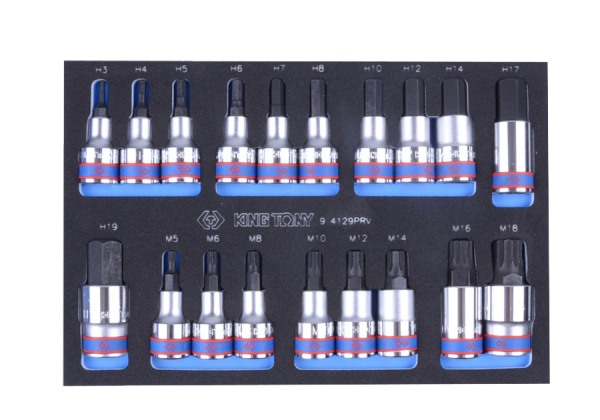 PROMOCJA-ZESTAW NASADEK 1/2" KRÓTKIE HEX H3 - H19, SPLINE M5 - M18, WKŁAD Z PIANKI EVA DO WÓZKA 19 CZ.