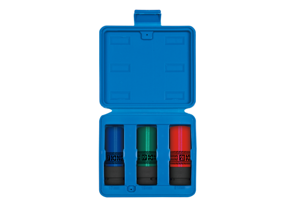 PROMOCJA-ZESTAW NASADEK UDAROWYCH 1/2" DO FELG ALUMINIOWYCH 3cz. 6-kąt. 17, 19, 21mm, PLASTIKOWA KASETA