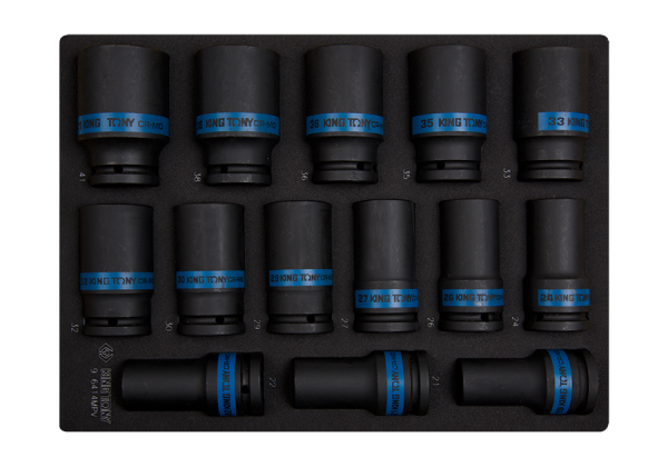 PROMOCJA-ZESTAW NASADEK UDAROWYCH 3/4" 14cz. DŁUGIE 6-kąt. 19 - 41mm, WKŁAD Z PIANKI EVA DO WÓZKA