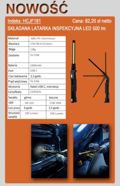 SKŁADANA LATARKA INSPEKCYJNA LED 500lm