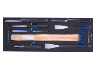 ZESTAW 8cz. PRZECINAKI 17 - 20mm + PUNKTAK 4mm + WYBIJAKI 3 - 6mm + MŁOTEK 7821-30 ,WKŁAD Z PIANKI EVA DO WÓZKA