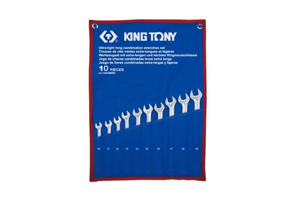 ZESTAW KLUCZY PŁASKO-OCZKOWYCH DŁUGICH 10cz. 10 - 19mm, ETUI
