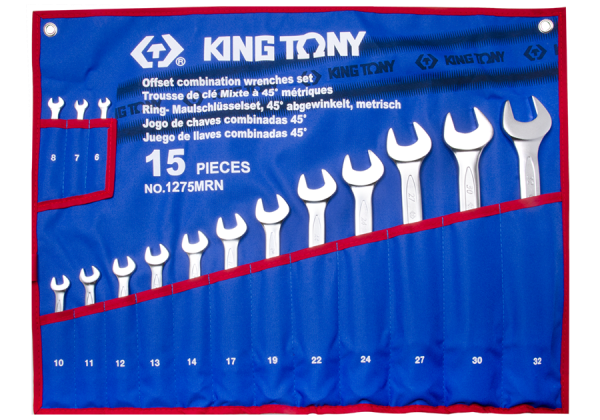 ZESTAW KLUCZY PŁASKO-OCZKOWYCH ODGIĘTYCH 15cz. 6 - 32mm, ETUI