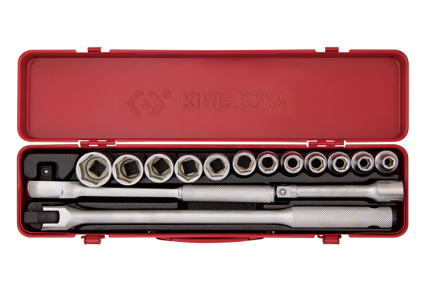 ZESTAW NASADEK 1/2" 15cz. KRÓTKIE 6-kąt. 8 - 27mm, Z AKCESORIAMI, KASETA