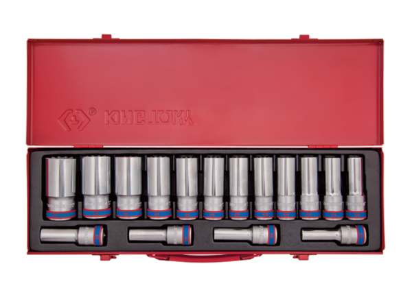 ZESTAW NASADEK 1/2" 16cz. DŁUGIE 10 - 32mm 12-kąt. KASETA
