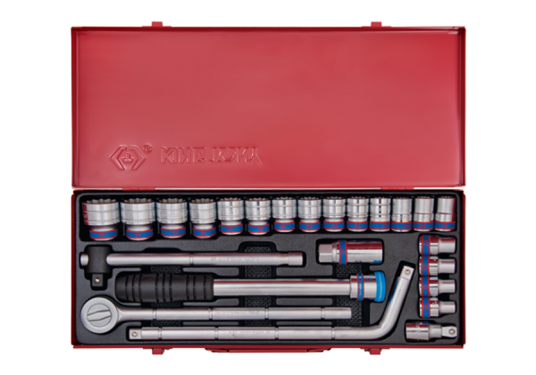 ZESTAW NASADEK 1/2" 24cz. KRÓTKIE 12-kąt. 10 - 32mm Z GRZECHOTKĄ I AKCESORIAMI, KASETA