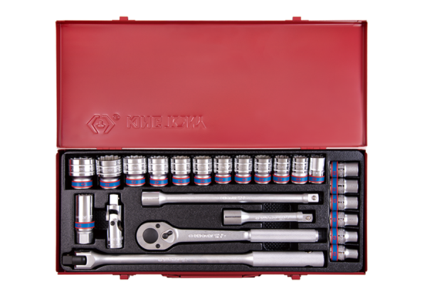 ZESTAW NASADEK 1/2" 24cz. KRÓTKIE 12-kąt. 10 - 32mm Z GRZECHOTKĄ I AKCESORIAMI, KASETA