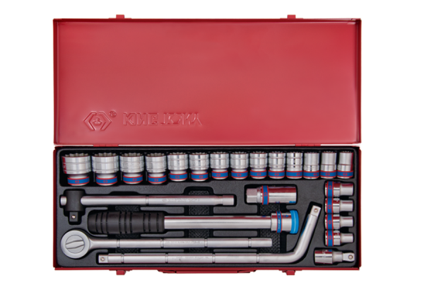ZESTAW NASADEK 1/2" 24cz. KRÓTKIE 6-kąt. 10 - 32mm Z AKCESORIAMI, KASETA