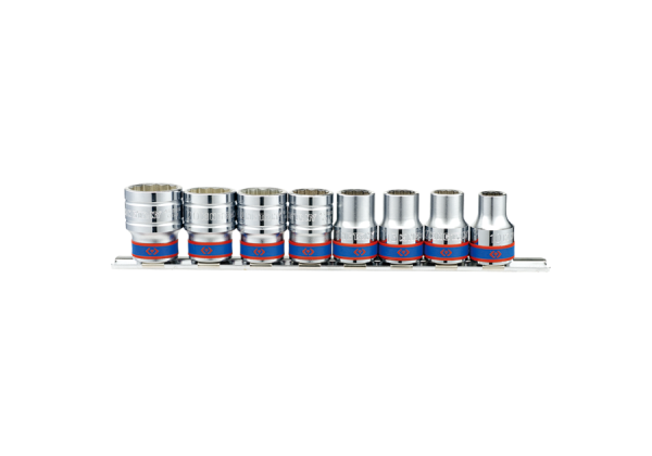 ZESTAW NASADEK 1/2" 8cz. KRÓTKIE 12-kąt. 10 - 22mm, SZYNA