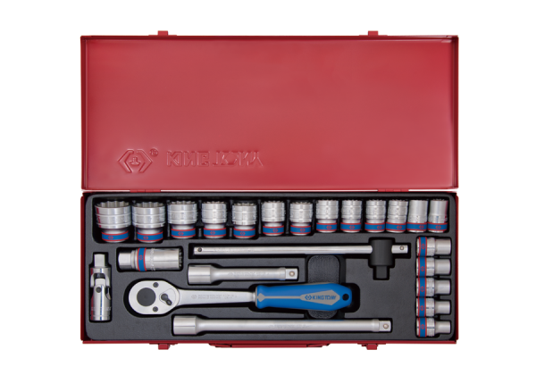 ZESTAW NASADEK 1/2", 24cz. KRÓTKIE 6-kąt. 10 - 32mm Z GRZECHOTKĄ I AKCESORIAMI, KASETA
