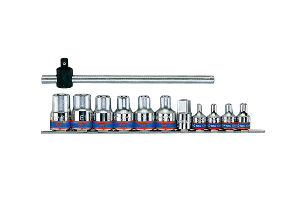 ZESTAW NASADEK 3/8"+1/2" 12cz. E4-E20+POKRĘTŁO, CHROM, SZYNA
