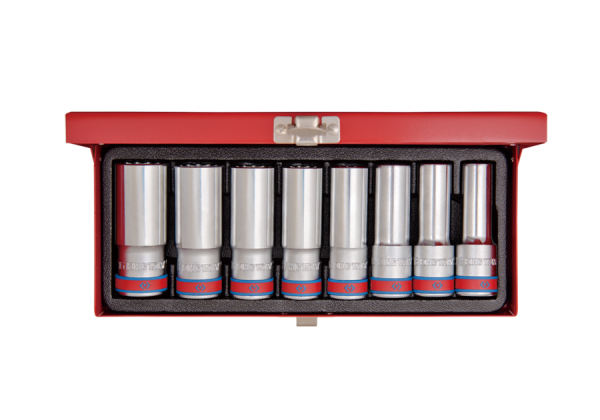 ZESTAW NASADEK CALOWYCH 1/2" 8cz. DŁUGIE 12-kąt. 1/2" - 15/16" KASETA