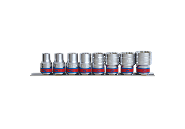 ZESTAW NASADEK CALOWYCH 1/2" 8cz. KRÓTKIE 12-kąt. 3/8" - 7/8", SZYNA