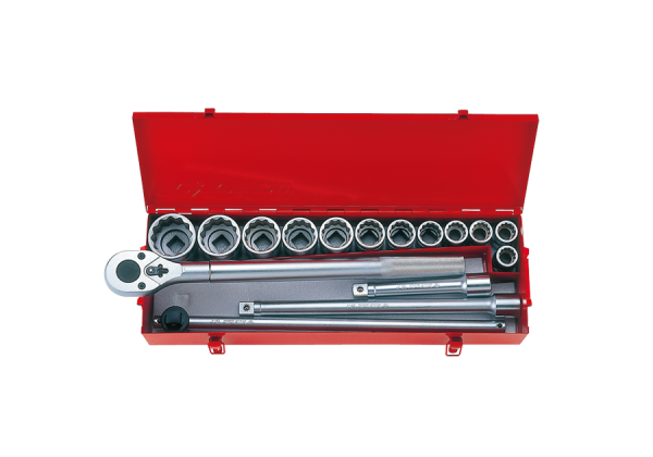 ZESTAW NASADEK CALOWYCH 3/4" 16cz. KRÓTKIE 12-kąt. 7/8" -2" Z GRZECHOTKĄ I AKCESORIAMI,KASETA