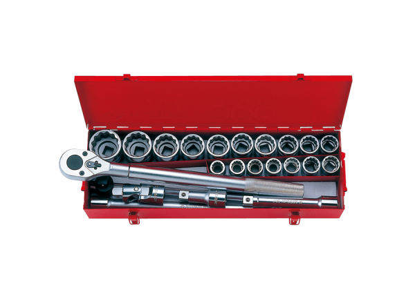 ZESTAW NASADEK CALOWYCH 3/4" 23cz. KRÓTKIE 12-kąt. 7/8"- 2" Z GRZECHOTKĄ I AKCESORIAMI, KASETA
