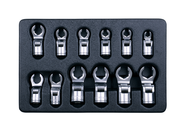 ZESTAW NASADEK PRZEGUBOWYCH DO PRZEWODÓW HAMULCOWYCH 3/8", 12 CZ. 8 - 19 mm, WKŁĄD DO WÓZKA