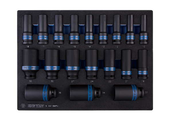 ZESTAW NASADEK UDAROWYCH 1/2" 19 cz. DŁUGIE 6-KĄT, 10 - 36mm, WKŁAD Z PIANKI EVA DO WÓZKA