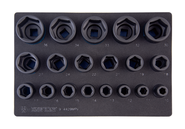 ZESTAW NASADEK UDAROWYCH 1/2" 19 cz. KRÓTKIE 6-KĄT, 10 - 36mm, WKŁAD Z PIANKI EVA DO WÓZKA