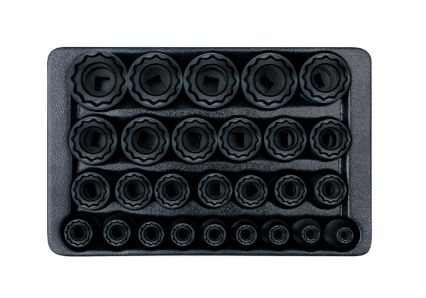 ZESTAW NASADEK UDAROWYCH 1/2" 27 cz. KRÓTKIE 12-KĄT, 8 - 36mm, WKŁAD DO WÓZKA