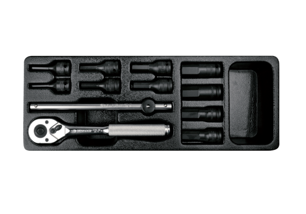 ZESTAW NASADEK UDAROWYCH 3/8" 12cz. KRÓTKIE HEX H4-H17 Z AKCESORIAMI, WKŁAD DO WÓZKA