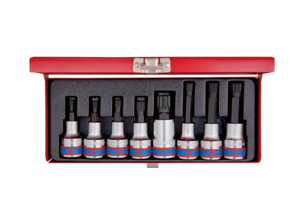 ZESTAW NASADEK Z KOŃCÓWKĄ SPLINE 1/2" 8 cz. KRÓTKIE/DŁUGIE M5-M16 KASETA