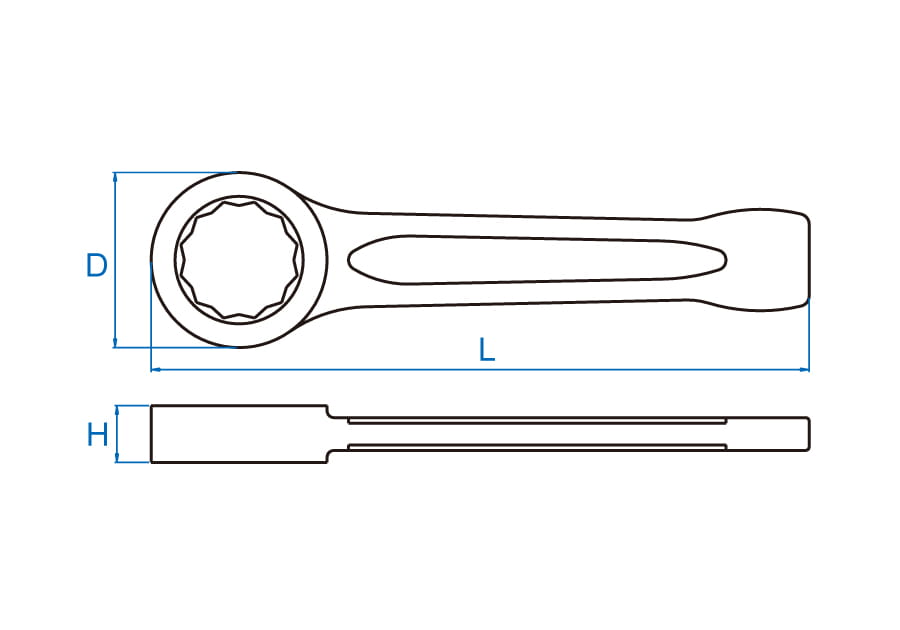 Wykonany z wysokiej jakości stali, powierzchnia fosforowana. Narzędzie zgodne z normą DIN 7444. Wymiary klucza w mm :- L - 380- D - 152- H - 40