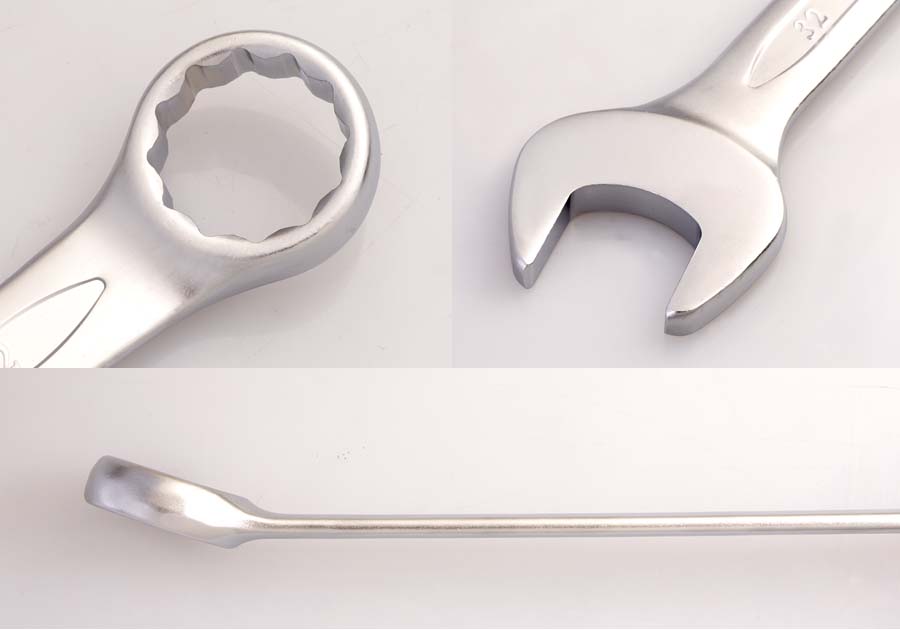 Klucz płasko-oczkowy w rozmiarze 19 mm. Całkowita długość klucza 235 mm. Klucz chromowany. Część oczkowa odchylona o 15 stopni w porównaniu z linią klucza, część płaska pochylona o 15 stopni w odniesieniu do linii klucza.