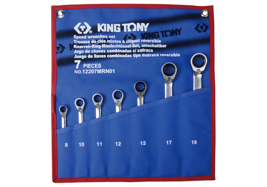ZESTAW KLUCZY PŁASKO-OCZKOWYCH Z GRZECHOTKĄ DWUKIERUNKOWĄ 7cz. 8 - 19mm, ETUI