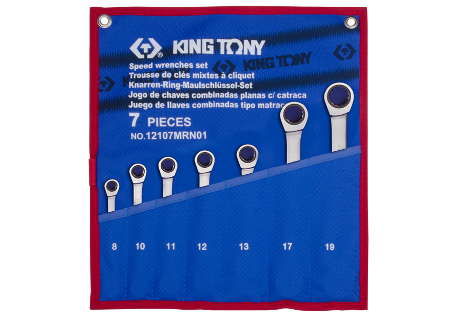 ZESTAW KLUCZY PŁASKO-OCZKOWYCH Z GRZECHOTKĄ JEDNOKIERUNKOWĄ 7cz. 8 - 19mm, ETUI