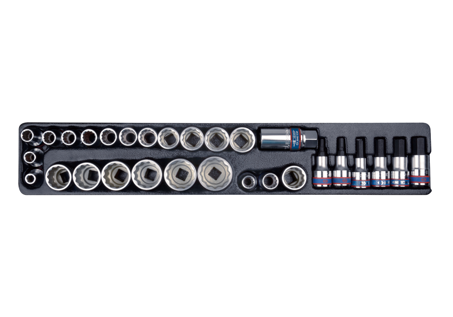 ZESTAW- NASADKI 1/2" 12-KĄT. KRÓTKIE 8 - 32MM, 7/16"-7/8", HEX H5 - H14, NASADKA DO ŚWIEC 21MM, WKŁAD DO SKRZYNKI 87408, 29 CZ.